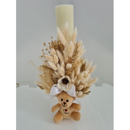 Lumanare botez alba cu ursulet bej
